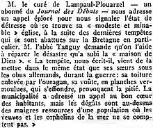 A. Illiou, recteur de la paroisse de Lampaul-Plouarzel, dans une lettre du adressée à l'évêque de Léon Jean-François de la Marche en réponse à son enquête sur la mendicité, écrit (l'orthographe de l'époque a été respectée) :