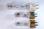 Lampes HMI, respectivement, de bas en haut : de 125 W, 200 W et 400 W.