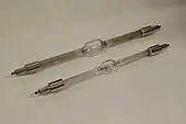 Lampes HMI de 12 kW et 18 kW de trois fabricants différents (de bas en haut, Osram, Philips, General Electric.