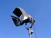 Un projecteur HMI 12-18 kW en action, avec une lampe de 18 kW monoculot.