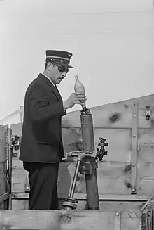 Mise en place de lance-mines 8,1 cm 1933 pendant des manœuvres en 1955.