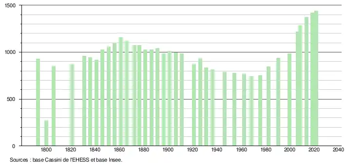 Le nombre d'habitants passe de 1 407 à 852 au tout début du XIXe siècle, après la perte de la trève de Penguily.