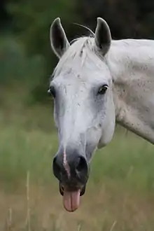 Une étude menée sur 52 chevaux sujets à des tics a permis de dénombrer parmi eux cinq chevaux exprimant des stéréotypies avec les lèvres et/ou la langue[30].