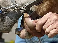 Attraper la langue d'un cheval constitue une méthode connue pour immobiliser l'animal[3],[37] ; il faut toutefois veiller à ne pas la manipuler de façon brutale[37].