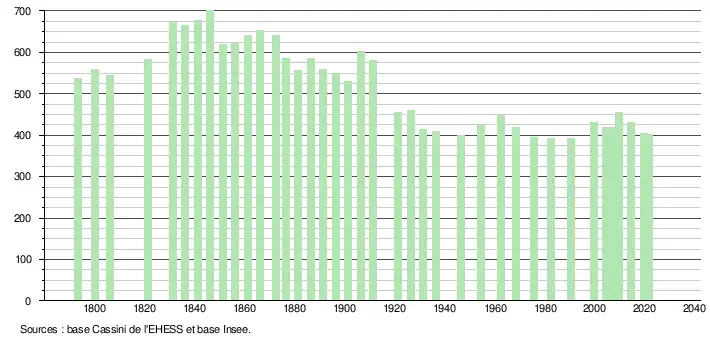 La démographie n'a guère évolué au cours de la seconde moitié du XXe siècle. Depuis une vingtaine d'années, un certain nombre de résidences secondaires ont été construites sur le littoral, même si cette pression foncière est beaucoup moins forte que dans les autres communes littorales.
