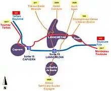 L'orientation et la localisation de Lannemezan par rapport à quelques grandes villes françaises sont données dans le tableau suivant[2] (les distances sont données par l'itinéraire le plus rapide, par la route) :