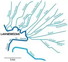 | La Petite Baïse (ou Baïse devant) | 75 km | Lannemezan (Hautes-Pyrénées) | Baïse (rive droite) | L'Isle-de-Noé (Gers) |