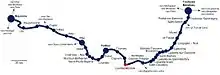 | Distance | 37 km | 126 km | 190 km | 268 km | 359 km | 524 km | 609 km | 656 km | 688 km | 801 km | 907 km | 1 017 km | 1 147 km |