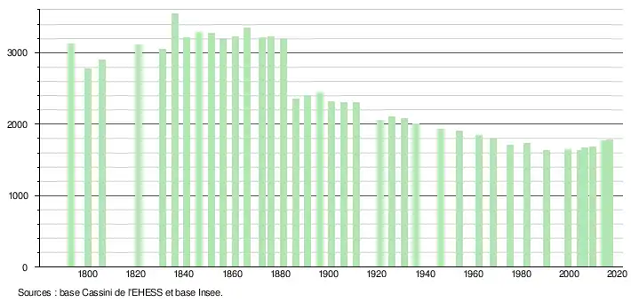 - Population municipale légale en vigueur au 1er janvier 2019, millésimée 2016, définie dans les limites territoriales en vigueur au 1er janvier 2018, date de référence statistique : 1er janvier 2016.