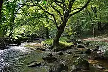 - Les chaos de la Rance : ces gros blocs de diorite[33] sont accumulés, depuis près de 500 millions d'années, dans le lit de la Rance. D'autres blocs de même nature restent accrochés sur les flancs de la vallée, ce qui a alimenté la légende de la Roche au Géant.