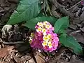 Lantana camara est un arbrisseau buissonnant sarmenteux épineux, arrondi ou étalé. Il atteint une hauteur de 0,5 à 3 m[4].
