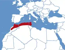 L'espèce est connue dans les montagnes de l'Atlas et des plaines côtières du Maroc, du nord de l'Algérie, de la Tunisie et des zones désertiques voisines[1].