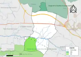 Carte de la ZNIEFF de type 2 de la commune.