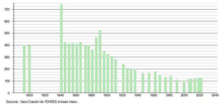 - Population municipale légale en vigueur au 1er janvier 2024, millésimée 2021, définie dans les limites territoriales en vigueur au 1er janvier 2023, date de référence statistique : 1er janvier 2021.