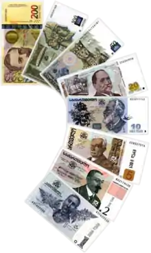 - Billet de 200 laris : l'aristocrate et le commandant militaire géorgien Kakoutsa Tcholokhachvili.