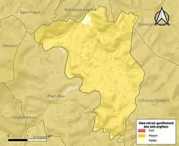 Le retrait-gonflement des sols argileux est susceptible d'engendrer des dommages importants aux bâtiments en cas d’alternance de périodes de sécheresse et de pluie[38]. 98,9 % de la superficie communale est en aléa moyen ou fort (59 % au niveau départemental et 48,5 % au niveau national)[Carte 5]. Depuis le , en application de la loi ELAN, différentes contraintes s'imposent aux vendeurs, maîtres d'ouvrages ou constructeurs de biens situés dans une zone classée en aléa moyen ou fort[Note 8],[39].
