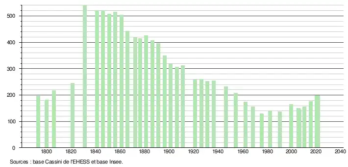 - Population municipale légale en vigueur au 1er janvier 2024, millésimée 2021, définie dans les limites territoriales en vigueur au 1er janvier 2023, date de référence statistique : 1er janvier 2021.