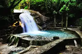 Las Pozas (Les Bassins, en espagnol) est un lieu-dit et jardin de sculptures tropical surréaliste de 32 hectares, créé entre 1962 et 1984 par le mécène surréaliste britannique Edward James (1907-1984) près de la municipalité de Xilitla, dans la Sierra Madre occidentale, au Mexique (version terrestre du jardin d'Éden romantique tropical équatorial surréaliste de la genèse biblique de ses rêves).