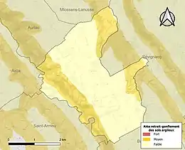 Le retrait-gonflement des sols argileux est susceptible d'engendrer des dommages importants aux bâtiments en cas d’alternance de périodes de sécheresse et de pluie[28]. 32,9 % de la superficie communale est en aléa moyen ou fort (59 % au niveau départemental et 48,5 % au niveau national)[Carte 3]. Depuis le , en application de la loi ELAN, différentes contraintes s'imposent aux vendeurs, maîtres d'ouvrages ou constructeurs de biens situés dans une zone classée en aléa moyen ou fort[Note 5],[29].