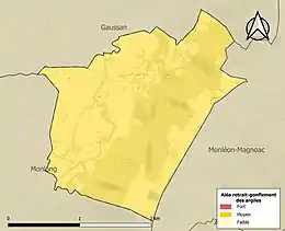 Le retrait-gonflement des sols argileux est susceptible d'engendrer des dommages importants aux bâtiments en cas d’alternance de périodes de sécheresse et de pluie. La totalité de la commune est en aléa moyen ou fort (44,5 % au niveau départemental et 48,5 % au niveau national). Sur les 22 bâtiments dénombrés sur la commune en 2019, 22 sont en aléa moyen ou fort, soit 100 %, à comparer aux 75 % au niveau départemental et 54 % au niveau national. Une cartographie de l'exposition du territoire national au retrait gonflement des sols argileux est disponible sur le site du BRGM[31],[Carte 3].