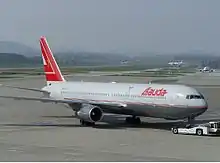 Un Boeing 767-300ER de Lauda Air à l'aéroport international de Zurich en avril 2003.