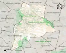 Les communes limitrophes sont Aigues-Vives, Badens, Bagnoles, Bouilhonnac, Caunes-Minervois, Malves-en-Minervois, Peyriac-Minervois, Rieux-Minervois, Rustiques, Saint-Frichoux, Trèbes, Villarzel-Cabardès et Villeneuve-Minervois.