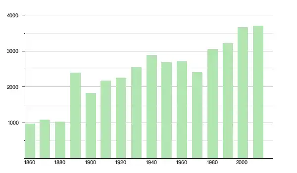 | 1950 | 2 700 | ▼ −6,38 % | |