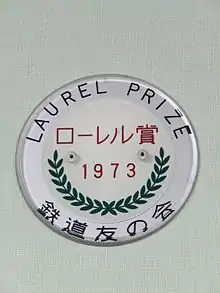 La plaque Laurel Prize de 1973 sur une rame Odakyu 9000