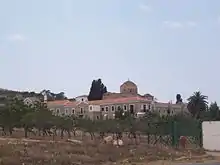 Laurent de Salamine, de son vrai nom Lambros Kanellos, est né à Mégare, dans la région de l’Attique, au cours de la première moitié du XVIIe siècle. Il était simple maçon jusqu’au jour où la Mère de Dieu lui apparut à trois reprises et lui ordonna d’aller sur l’île de Salamine et d’y construire un monastère qui lui serait consacré. Saint Laurent hésita mais s'y résolut après une nouvelle apparition, au cours de laquelle la Mère de Dieu lui montra le plan précis du monastère qu'elle voulait le voir construire.