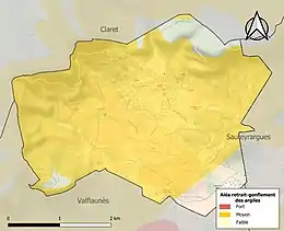Le retrait-gonflement des sols argileux est susceptible d'engendrer des dommages importants aux bâtiments en cas d’alternance de périodes de sécheresse et de pluie. 88 % de la superficie communale est en aléa moyen ou fort (59,3 % au niveau départemental et 48,5 % au niveau national). Sur les 216 bâtiments dénombrés sur la commune en 2019, 210 sont en aléa moyen ou fort, soit 97 %, à comparer aux 85 % au niveau départemental et 54 % au niveau national. Une cartographie de l'exposition du territoire national au retrait gonflement des sols argileux est disponible sur le site du BRGM[19],[Carte 2].