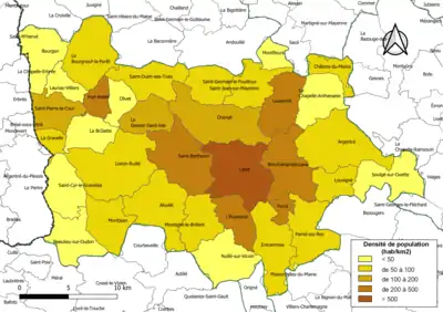 | Châlons-du-Maine | 53049 | Châlonnais | 9,66 | 699 (2021) | 72 |