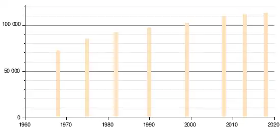 - trois forment l'unité urbaine de Laval (déterminée par l'Insee sur une base géographique). Il s'agit de Laval, Changé, et Saint-Berthevin. Elles totalisaient à elles-seules 63 407 habitants en 2021 pour 101,0 km2[7]. L'Huisserie constitue une unité urbaine autonome[8].