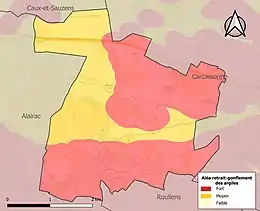 Le retrait-gonflement des sols argileux est susceptible d'engendrer des dommages importants aux bâtiments en cas d’alternance de périodes de sécheresse et de pluie. La totalité de la commune est en aléa moyen ou fort (75,2 % au niveau départemental et 48,5 % au niveau national). Sur les 658 bâtiments dénombrés sur la commune en 2019, 658 sont en aléa moyen ou fort, soit 100 %, à comparer aux 94 % au niveau départemental et 54 % au niveau national. Une cartographie de l'exposition du territoire national au retrait gonflement des sols argileux est disponible sur le site du BRGM[21],[Carte 3].