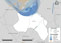 Les crues du Loir sont moins importantes que celles de la Loire, mais elles peuvent générer des dégâts importants. Les crues historiques sont celles de 1665 (4 m à l'échelle de Vendôme), 1784 (2,84 m), 1961 (2,90 m) et 2004 (2 m). Le débit maximal historique est de 256 m3/s et caractérise une crue de retour cinquantennal[37]. Le risque d'inondation est pris en compte dans l'aménagement du territoire de la commune par le biais du Plan de prévention du risque inondation (PPRI) du Loir[38].