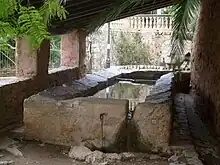 - bassins : en amont le rinçoir, en aval le lavoir, l'abreuvoir ;