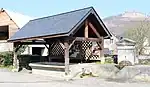 Le lavoir est un édifice rectangulaire à toiture à deux pentes recouvert d’ardoises de la vallée, qui est supportée par des piliers.