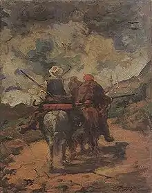 Alors nous sommes partis pour la maison. Quand nous nous sommes éloignés de l'école une cinquantaine de mètres, peut-être cent, jusqu'à la fontaine d'où l'on portait l'eau pour l'école et l'habitat autour, elle existe toujours, nous avons rencontré Lazo - les gendarmes l'emmènent. Une patrouille de gendarmes.