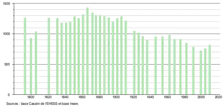 L'évolution du nombre d'habitants est connue à travers les recensements de la population effectués dans la commune depuis 1793. À partir du , les populations légales des communes sont publiées annuellement dans le cadre d'un recensement qui repose désormais sur une collecte d'information annuelle, concernant successivement tous les territoires communaux au cours d'une période de cinq ans.