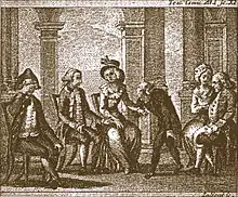 Gravure à l’eau-forte d'une scène du Café de Goldoni (XVIIIe siècle).