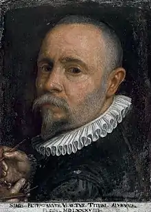 Giovanni Paolo Lomazzo, Autoportrait en peintre et abbé de l'Accademia della Val di Blenio, v. 1568. Pinacothèque de Brera, Milan[alpha 8].