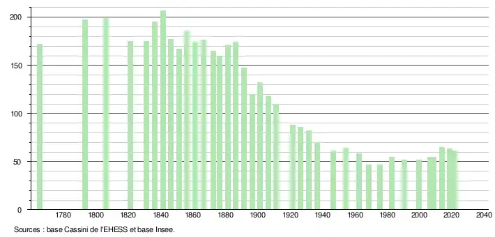 61 hab. (2021 en diminution de 4,69 % par rapport à 2015)