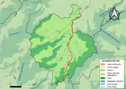 L'occupation des sols de la commune, telle qu'elle ressort de la base de données européenne d’occupation biophysique des sols Corine Land Cover (CLC), est marquée par l'importance des territoires agricoles (64,4 % en 2018), en augmentation par rapport à 1990 (61,7 %). La répartition détaillée en 2018 est la suivante : prairies (63,1 %), forêts (35,6 %), zones agricoles hétérogènes (1,3 %)[23].