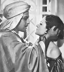 - Tourné avant l'instauration du Code Hays, le film traite l'érotisme de manière explicite tout en gardant une distance dans les scènes. Il est montré ici un oriental (Jamil) obsédé à l'idée de posséder une américaine (Diana). Le voyeurisme est de rigueur dans la scène de l'hôtel où Jamil épie Diana, tentant de poser sa main sur elle. Il finit par s'introduire dans sa chambre. Jamil El Shahib parvient à l'embrasser et tente de passer la nuit avec elle. Dans un moment de passion, Diana échangera un long baiser avec lui avant de le congédier. Dans la scène du désert, après une longue marche, Jamil parvient à coucher avec Diana Standing (scène suggérée) même si le film le présente comme un viol [7].