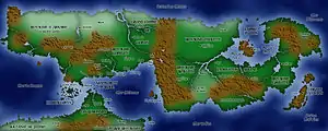 - Le Royaume Lorelien : il a pour capitale Lorelia, une ville portuaire réunissant des marchands de toutes les origines à l'embouchure du Gisle. La monnaie du royaume est la Terce. Il est connu pour posséder la meilleure flotte du monde. Il a de nombreuses frontières, étant est limitrophe au nord du royaume d'Arkarie, à l'est du grand empire de Goran, au sud-ouest du Matriarcat de Kaul et au nord-nord-ouest du vieux royaume de Romine. Le Royaume Marchand comprend un protectorat, la principauté de Semilia, et est composé d'au moins 3 duchés (Kercyan au centre, Lermian à l'est et Cyr la Haute au nord). Bénélia est l'ancienne capitale qui fait face à l'actuelle de l'autre côté de l'embouchure.
