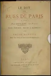 Le Dit des rues de Paris est un poème de 554 vers octosyllabiques à rimes plates, écrit par Guillot de Paris, qui y recense les rues du Paris vers 1280-1300.