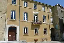 - Elle est mentionnée pour la première fois en 1371. Seul édifice de ce type dans la Drôme, la halle se caractérise surtout par sa belle charpente en chêne[réf. nécessaire].