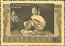 Les services des postes de l'URSS créent en 1966 un timbre à l'effigie du Joueur de luth de l'Ermitage, de même que ceux de l'Albanie en 1973[14] ou encore de l'émirat d'Ajman en 1968[15].