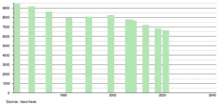 L'évolution du nombre d'habitants est connue à travers les recensements de la population effectués dans la commune depuis 1961, premier recensement postérieur à la départementalisation de 1946. À partir de 2006, les populations légales des communes sont publiées annuellement par l'Insee. Le recensement repose désormais sur une collecte d'information annuelle, concernant successivement tous les territoires communaux au cours d'une période de cinq ans. Pour les communes de moins de 10 000 habitants, une enquête de recensement portant sur toute la population est réalisée tous les cinq ans, les populations légales des années intermédiaires étant quant à elles estimées par interpolation ou extrapolation[15]. Pour la commune, le premier recensement exhaustif entrant dans le cadre du nouveau dispositif a été réalisé en 2008[16].
