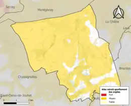 Le retrait-gonflement des sols argileux est susceptible d'engendrer des dommages importants aux bâtiments en cas d’alternance de périodes de sécheresse et de pluie. 84,1 % de la superficie communale est en aléa moyen ou fort (84,7 % au niveau départemental et 48,5 % au niveau national). Sur les 551 bâtiments dénombrés sur la commune en 2019, 492 sont en aléa moyen ou fort, soit 89 %, à comparer aux 86 % au niveau départemental et 54 % au niveau national. Une cartographie de l'exposition du territoire national au retrait gonflement des sols argileux est disponible sur le site du BRGM[25],[26].
