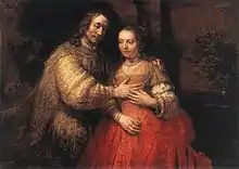 « Avec son chapeau à plumes et sa cuirasse ornementée, l'assassin est clairement désigné comme le prince courroucé de la légende. Tranchant sur le fond sombre, le rouge flamboyant de la tunique princière et de la cape de la sainte unit irrévocablement le prétendant déçu et sa promise. »